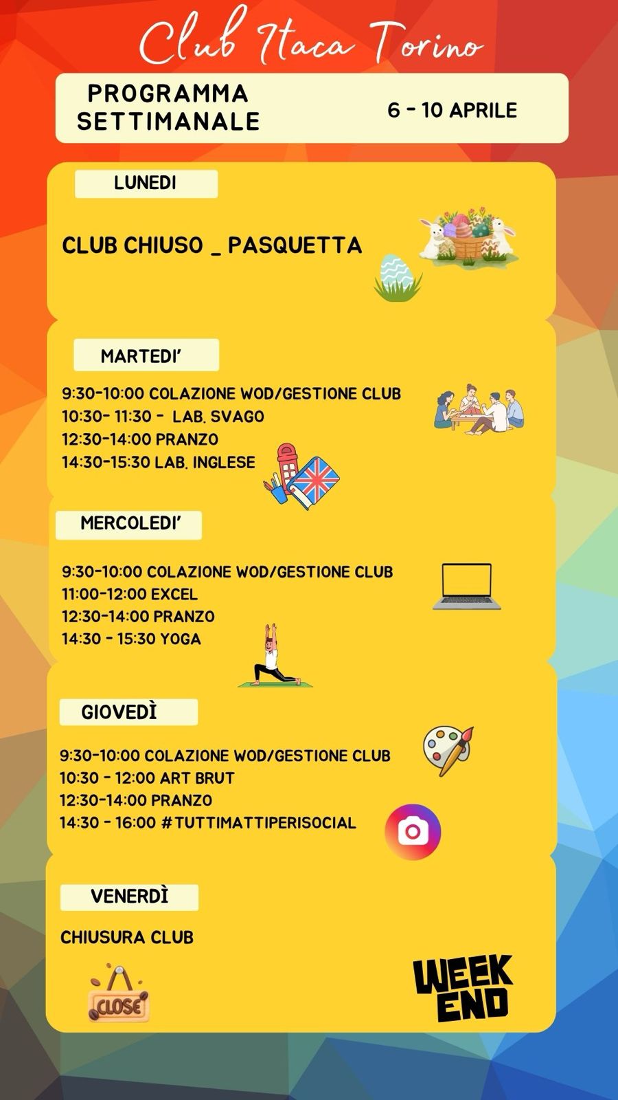 Il programma settimanale del Club Itaca Torino