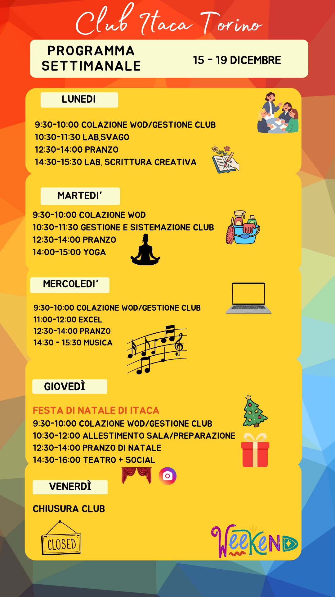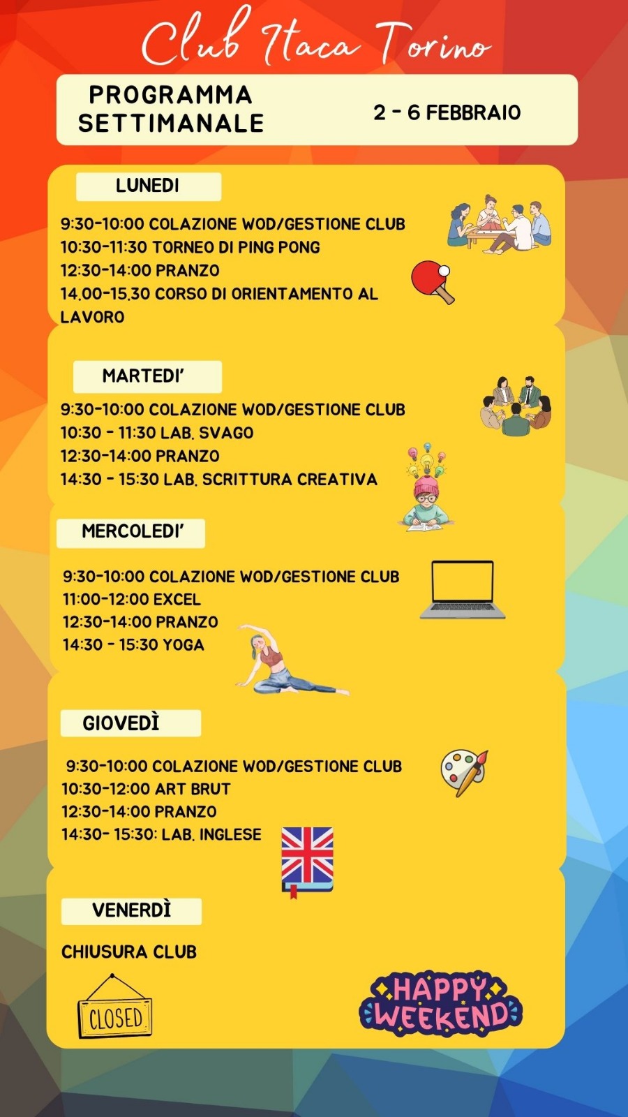 Il programma settimanale del Club Itaca Torino